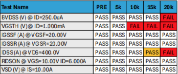 Note: Orange Indicates KTL Specifications Failure; Red Indicates Device Specifications Failure.